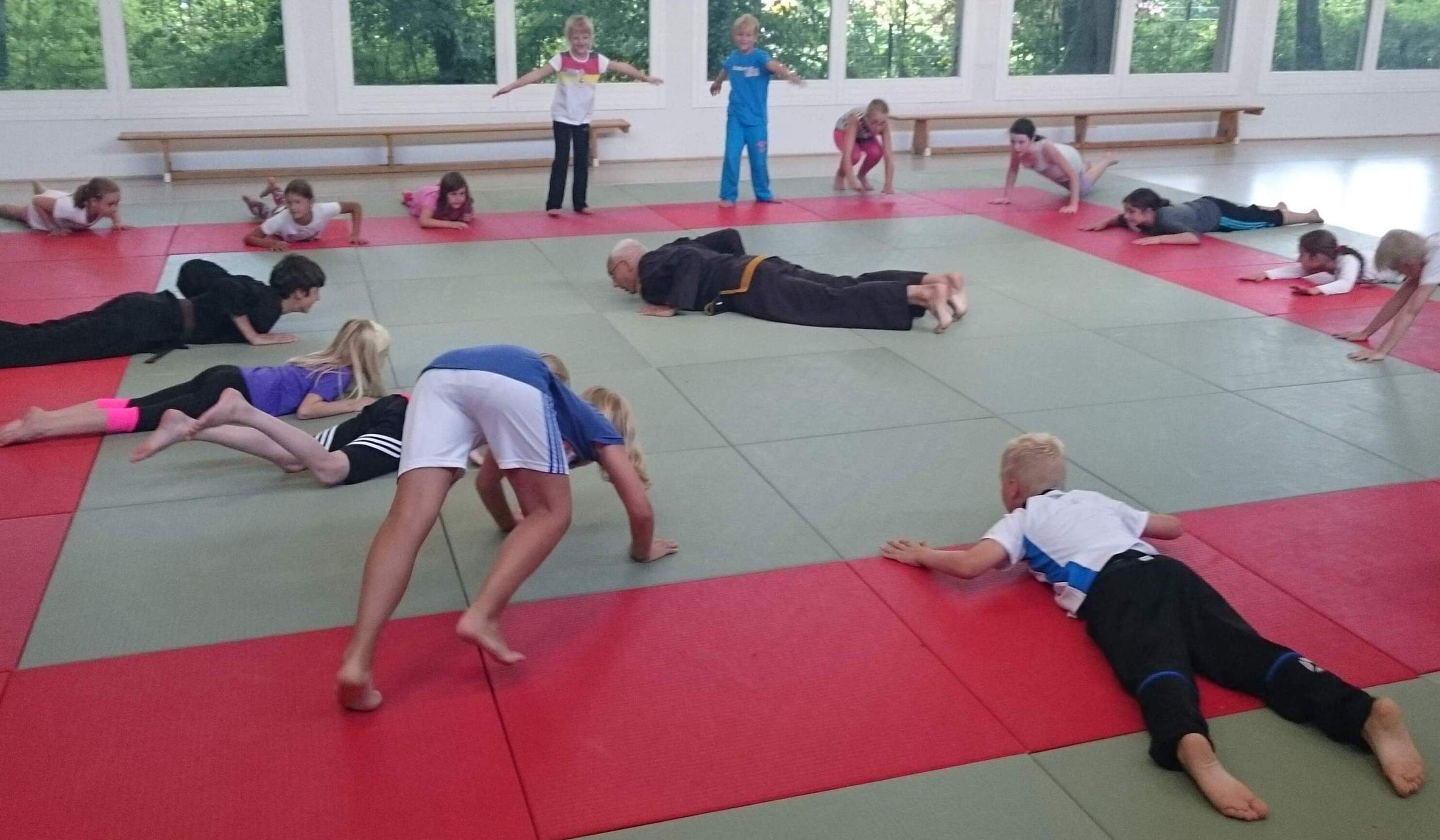 Das Training der körperlichen Fitness ist somit eine essentielle Voraussetzung, um zur eigentlichen Selbstverteidigung übergehen zu können. Jene ist am Anfang auf drei großen Säulen aufgebaut: Das Üben eines sicheren Abrollens (Fallschule) ist ein erster wichtiger Bereich, ein weiterer besteht aus dem geschulten Erlernen von Tritten und Schlägen zur eigenen Verteidigung. Der dritte und größte Teil umfasst das gezielte Abwehren verschiedener Angriffe unter der Anwendung der Hapkido-Prinzipien Kreisbewegung und Ausnutzung der gegnerischen Kraft, die auch eine Abwehr stärkerer Angreifer erlauben. An diesem Nachmittag ging es vorrangig um die Abwehr von gewöhnlichen Angriffen, wie dem Festhalten an den Handgelenken, dem Würgen und dem Ziehen an der Haaren, welchen sich Kinder und Jugendlichen in unterschiedlichen Situation auf dem Schulhof oder in der Freizeit ausgesetzt sehen.