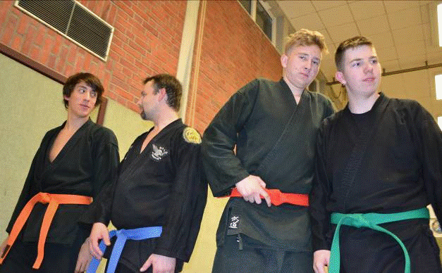 Nach mehreren anstrengenden Stunden, die mit Fallschule, Fuß- und Handtechniken, Abwehr gegen mehrere Angreifer, Freikampf, Bruchtest und Theorieprüfung gut gefüllt waren, konnten die Prüfer den Teilnehmern mitteilen, dass alle bestanden haben.
