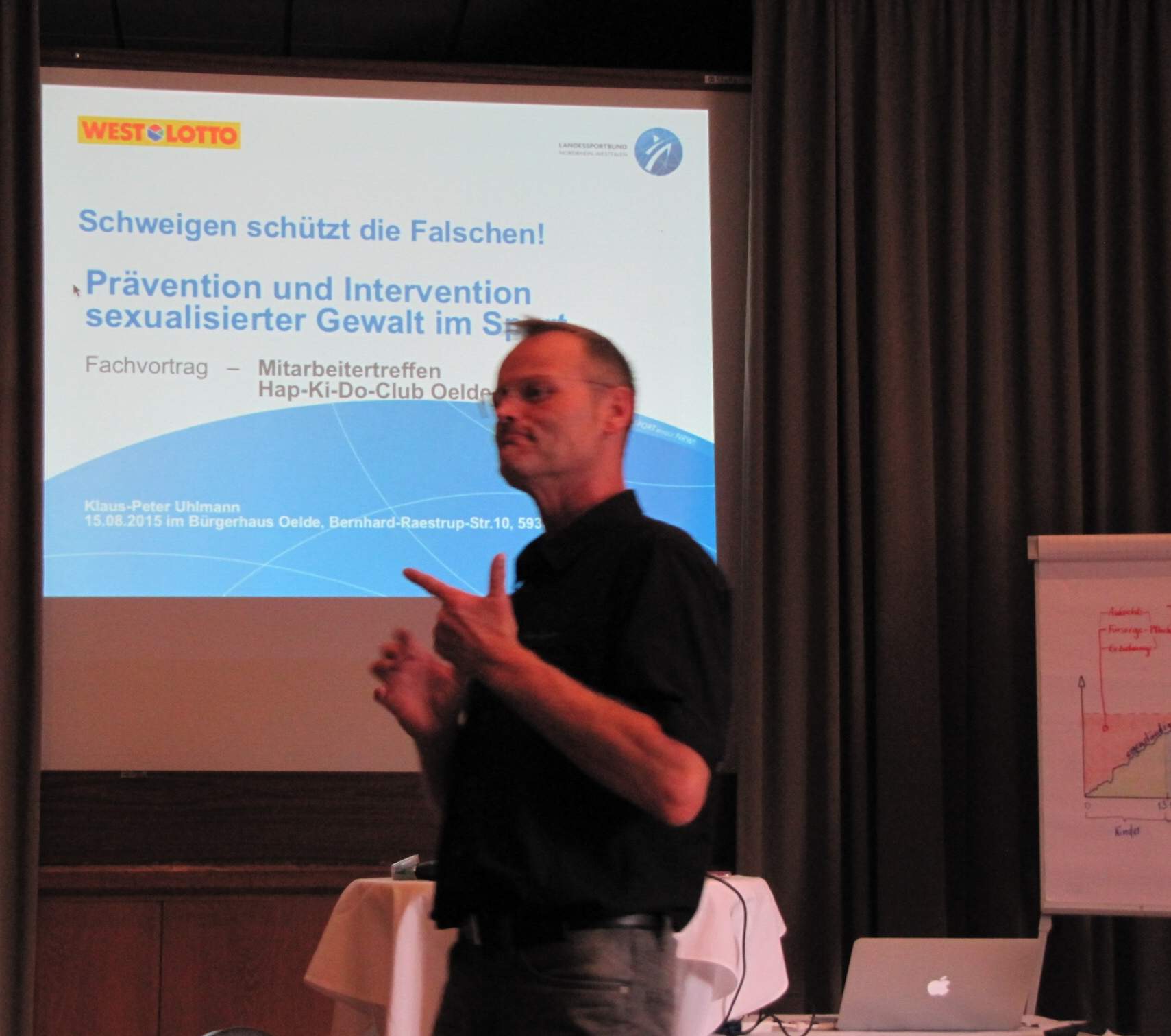 Nach den einleitenden Worten von Stefan Boegel wurden in einem kurzweiligen Vortrag zu dem Thema alle Teilnehmer im Alter ab 14 Jahren auf einen Sachstand gebracht. Die Teilnehmer unterzeichneten geschlossen den Ehrenkodex des Landessportbundes, in dem die Verhaltensregeln dem Trainierenden gegenüber den Kindern und Jugendlichen eine Richtlinie geben. Des Weiteren wurde als zusätzlicher Baustein der Prävention im Hapkido Club Oelde e.V. das erweiterte Führungszeugnis für alle ehrenamtlich Tätigen im kinder – und jugendnahen Bereich eingeführt.