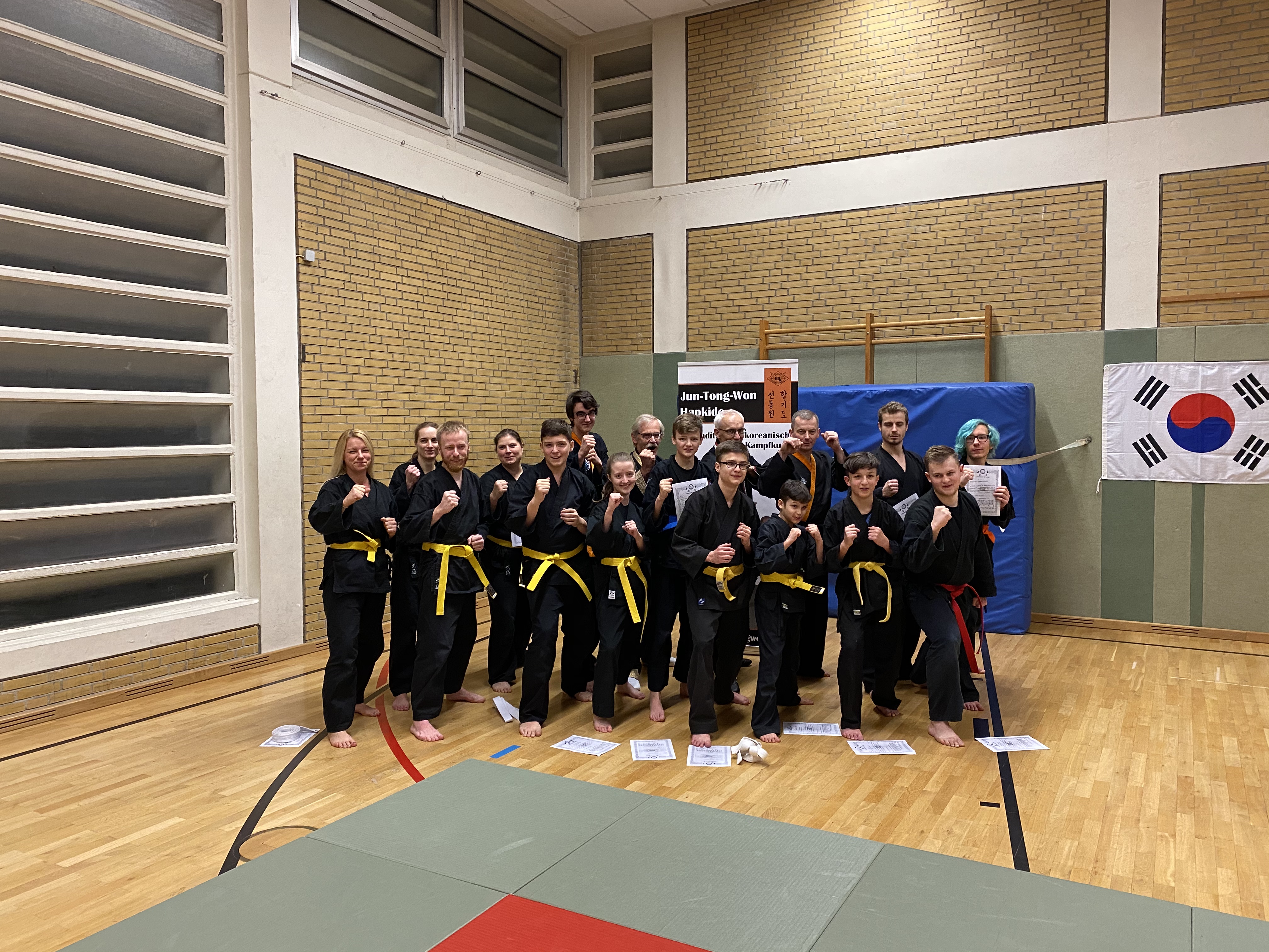 Alle Teilnehmer konnten nach einem langen abend ihren neuen Gürtel entgegennehmen und stolz auf ihre Leistung sein. Besonders hervorzuheben ist die Leistung von Marcel Kirsch zum blauen Gürtel, der an diesem Tag mit Präzision und dynamischen Techniken zu überzeugen wusste.